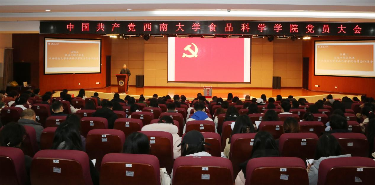 2025年12月30日,中国共产党西南大学食品科学学院党员大会在隆平楼四楼报告厅隆重举行。学院师生党员齐聚一堂,共绘学院发展新蓝图。大会由党委委员、副院长夏杨毅同志主持。