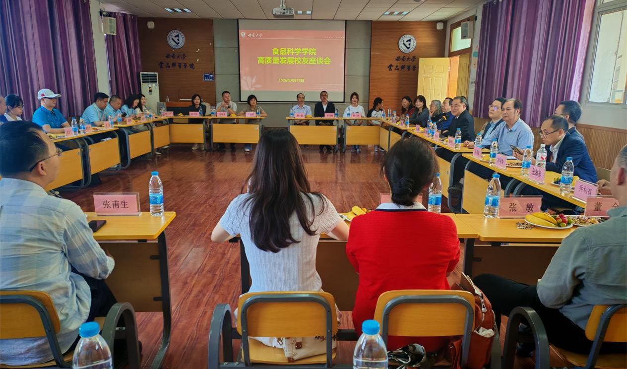 2026年4月18日,时值西南大学建校120周年校庆之际,食品科学学院在39教312学术报告厅成功举办校友座谈会。学院党委书记吴俊平、院长张宾佳、副书记黄楠、副院长夏杨毅出席会议,与来自各行各业的校友代表及学院在职教师代表共聚一堂,共商学院发展大计。座谈会由吴俊平主持。