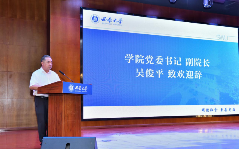 大会在庄严的国歌声中拉开帷幕。学院党委书记、副院长吴俊平致欢迎辞,向新生表达了热烈欢迎与殷切期望。他勉励同学们主动融入食品科学学院,在大学练就过硬本领,提升专业素养与人文素养,将个人理想融入国家发展中。